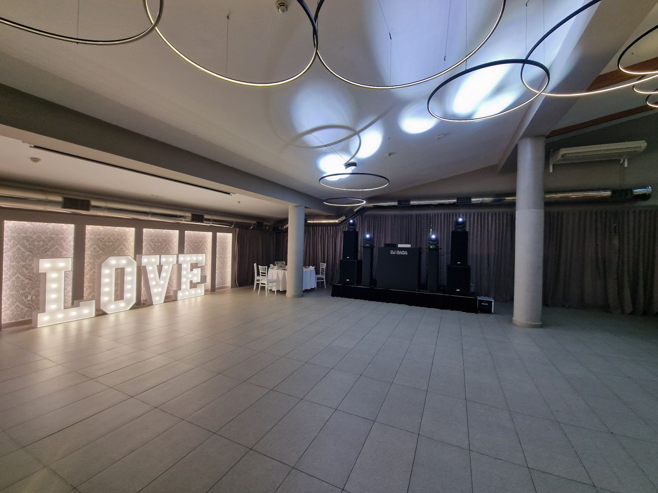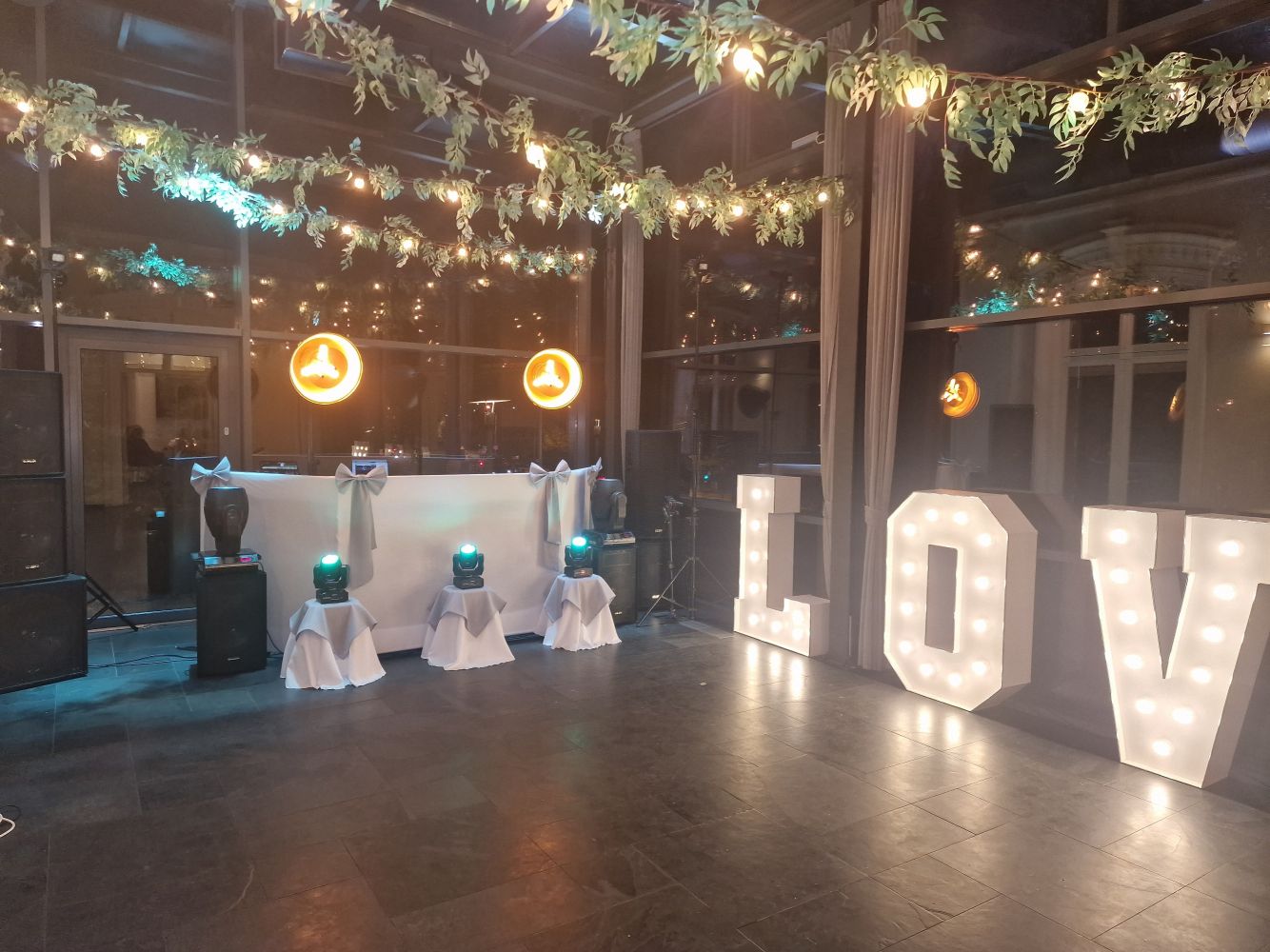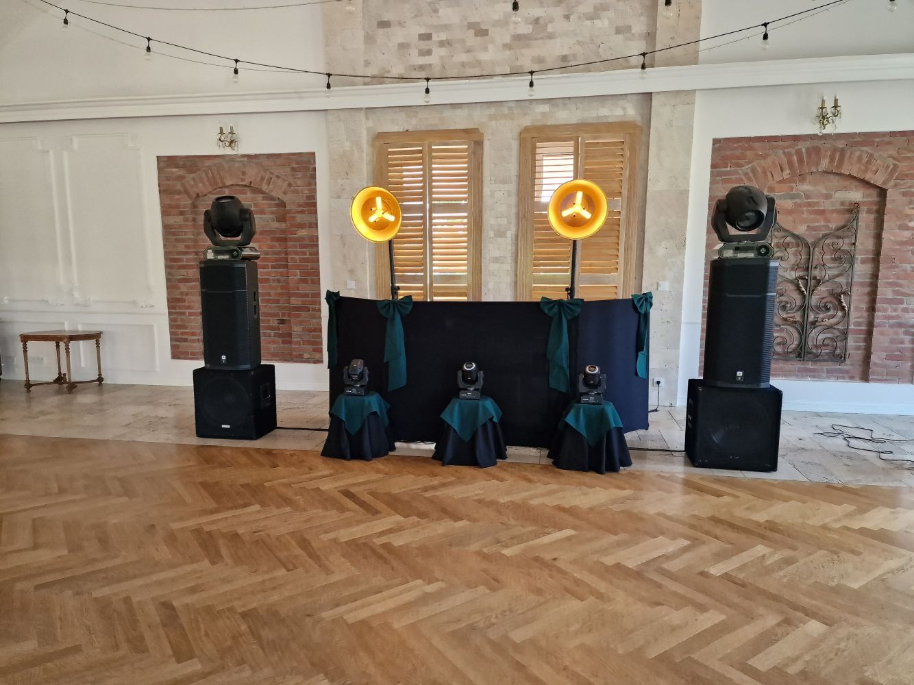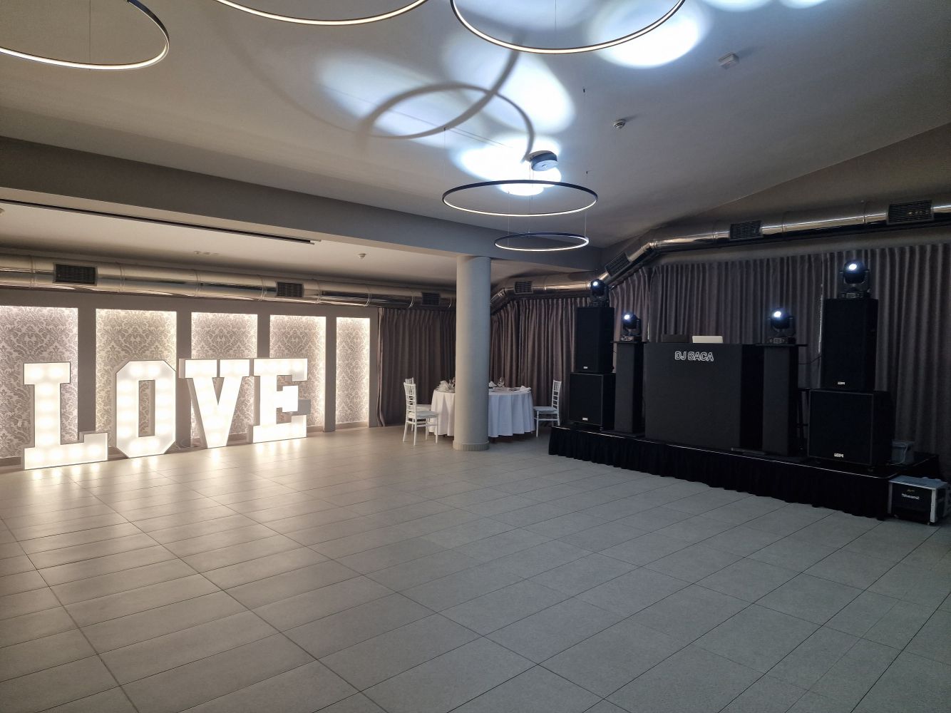 (instrumentaliści wraz z Djem, kapela z koncertem biesiadnym, nagłośnienie ceremonii zaślubin itp) - System oświetlenia estradowego w technologii led, adekwatne do wielkości sali, z możliwością wyboru oświetlenia retro w brawie białej ciepłej