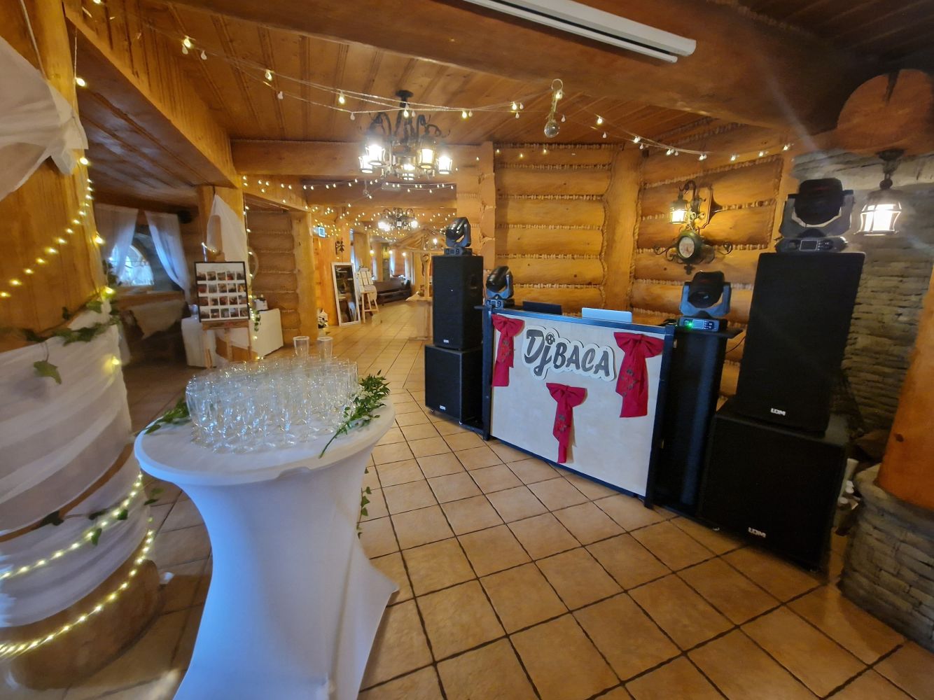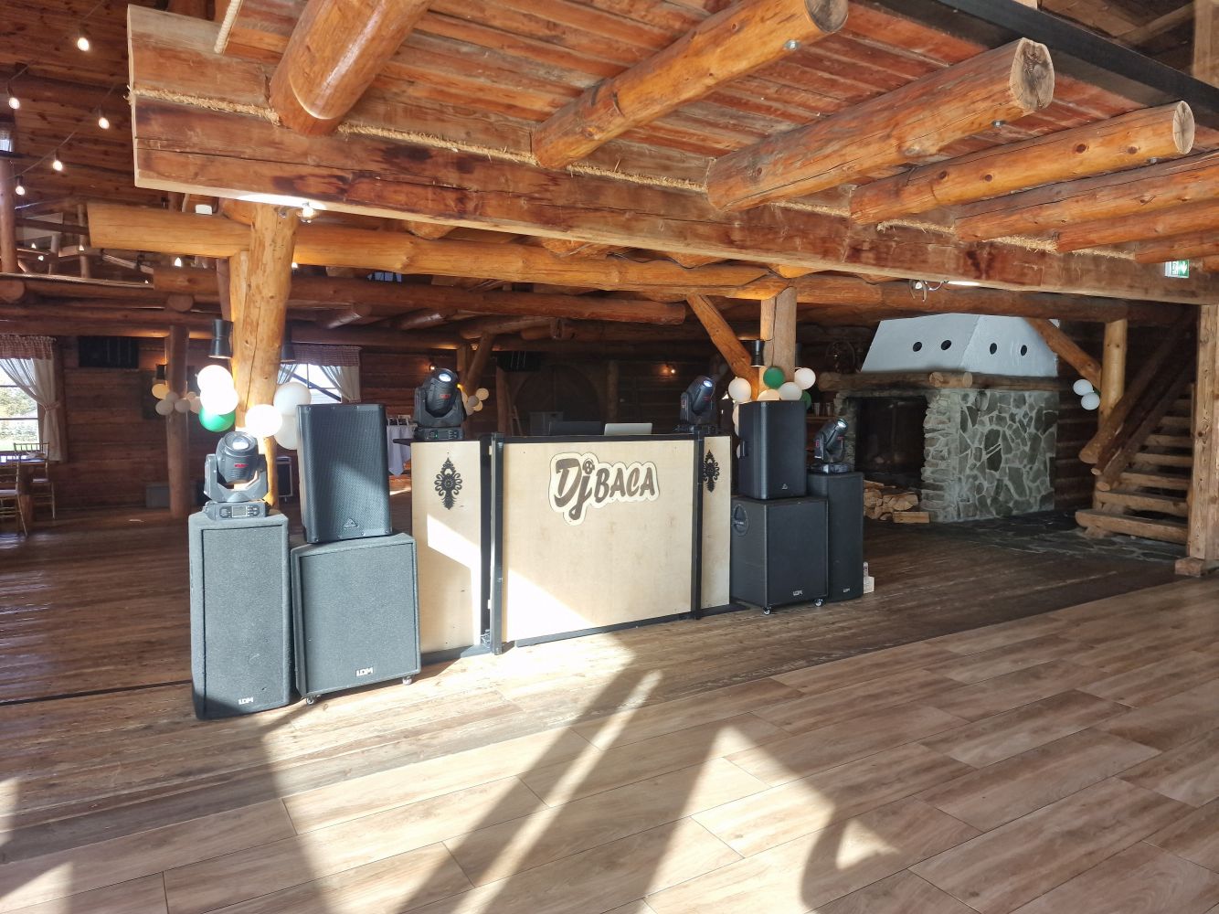 - Możliwośc dopasowania stanowiska do klimatu FOLKOWEGO - na styl góralski, lub Dopasowanie stanowiska DJa i sceny kapeli do klimatu RUSTYKALNEGO - wiejski klimat na wysokim poziomie. Drewniana konsola DJska i zabudowana w drewnie scena kapeli, stylowe dodatki drewniane, mnóstwo kwiatów, snopki zboża, koła od wozu, drewniane wypalane logo DJa i logo kapeli, opalane drewniane skrzynie.